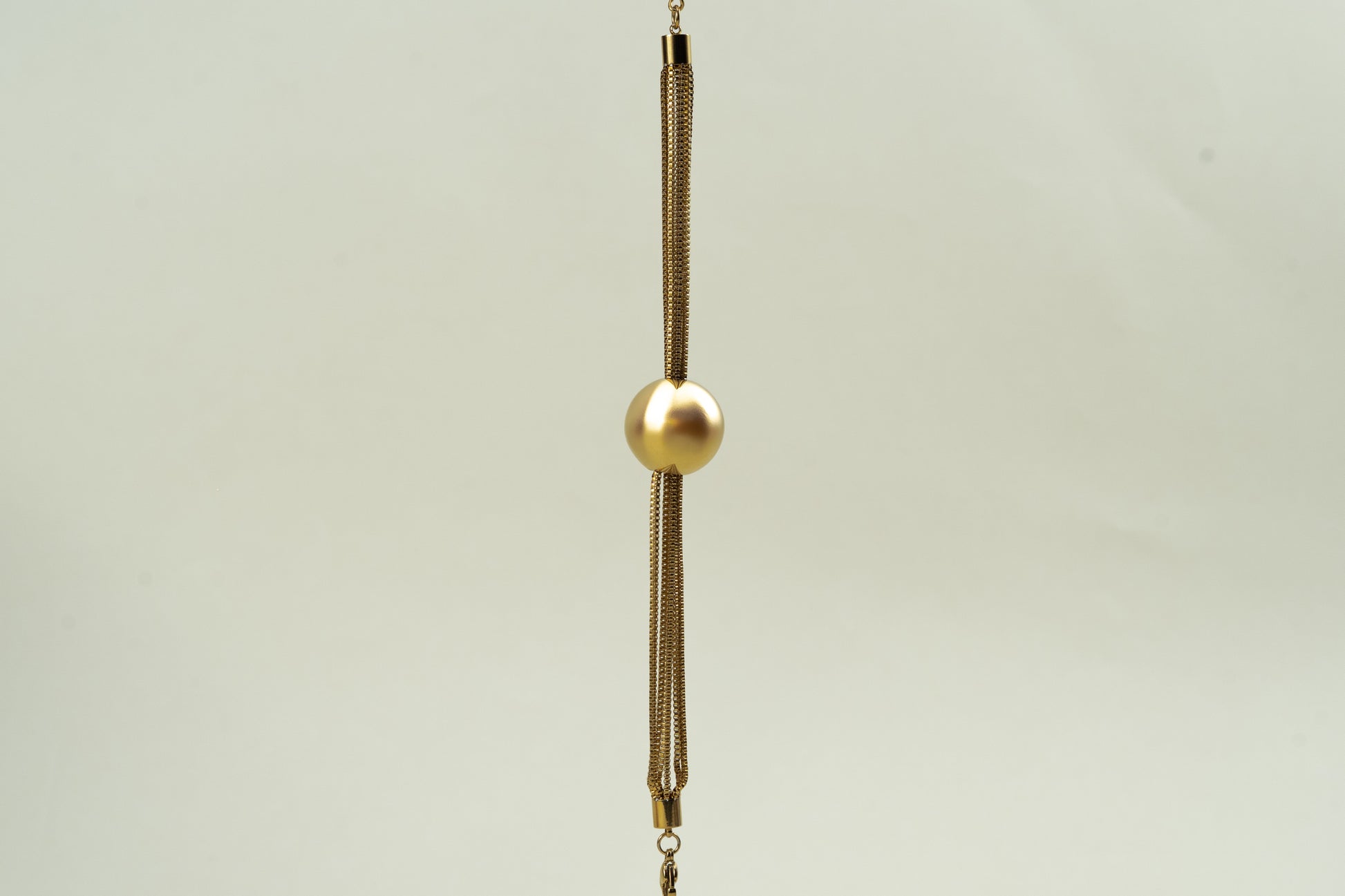 - Gold plated spherical orb affixed in the center of chain